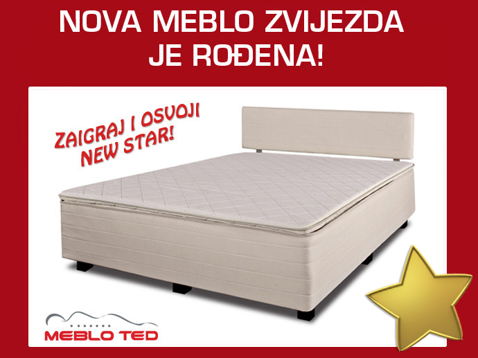 i pokušate osvojiti ovaj atraktivan krevet. Budite spretni i domišljati i možda baš vi osvojite Meblov NEW STAR! Tu su i utješne nagrade – udobni jastuk i nadmadrac od memory pjene! |
